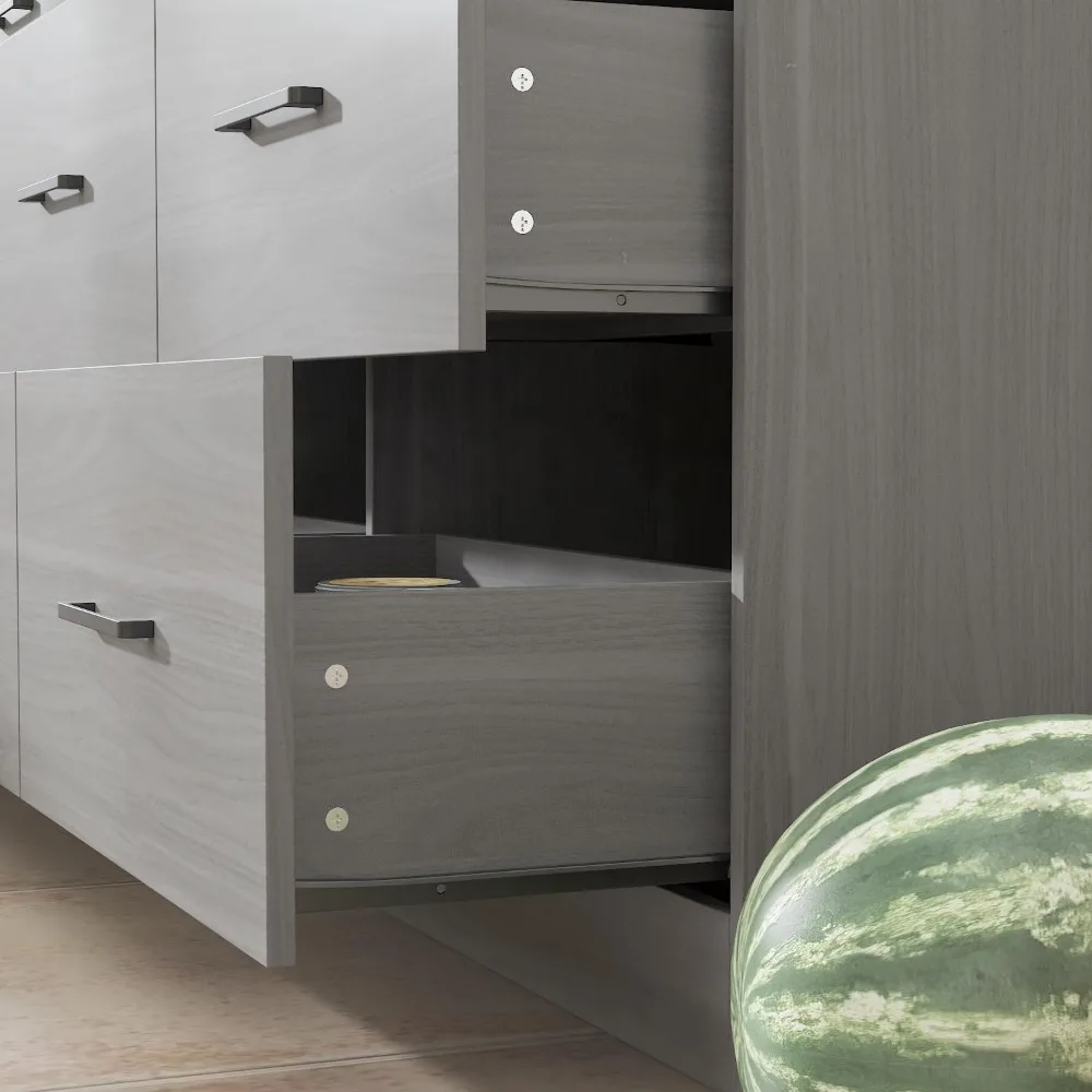 - [Durable & Sturdy Construction] – Made of premium MDF board, this grey cupboard is sturdy and can be used for years. The drawers with slide rails can be easily pulled out and pushed in, the metal hinges for doors are durable. Besides, the veneered surface is smooth and easy to clean