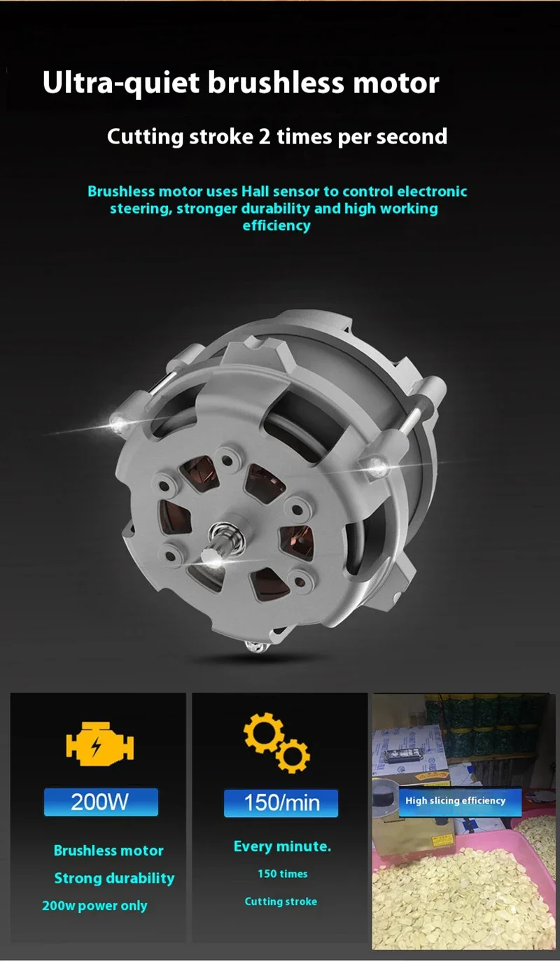 The 180W powerful motor provides ample power to easily handle a large number of slicing demands, with an efficiency of up to 10-60 pounds per hour, suitable for both commercial and household use.