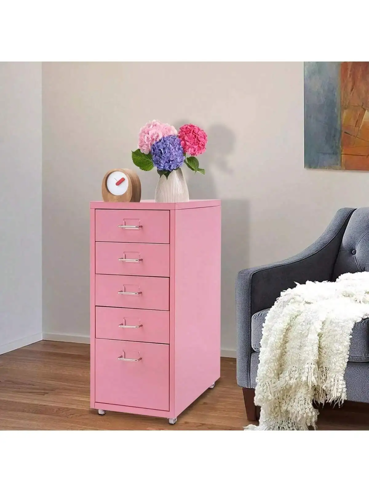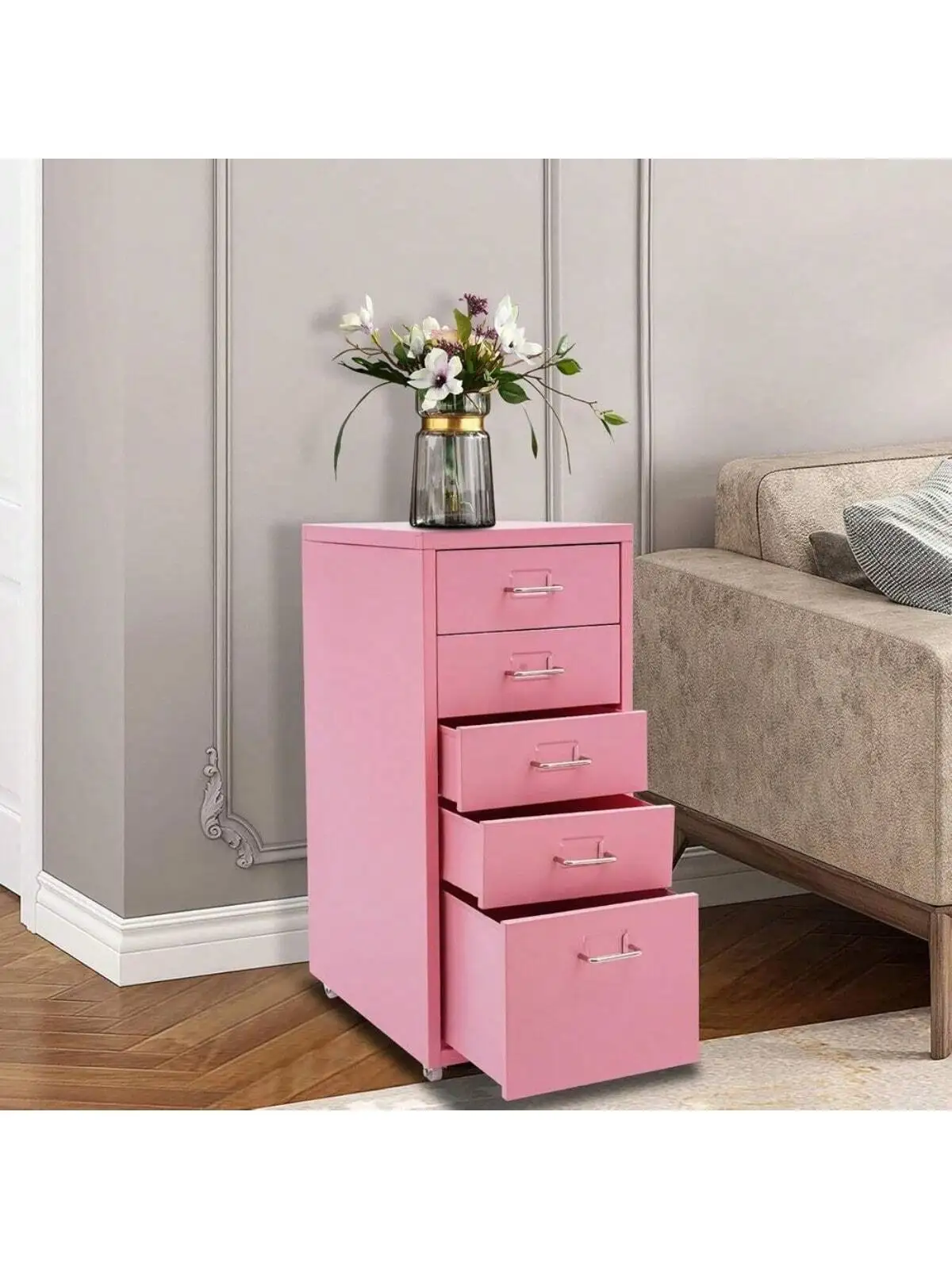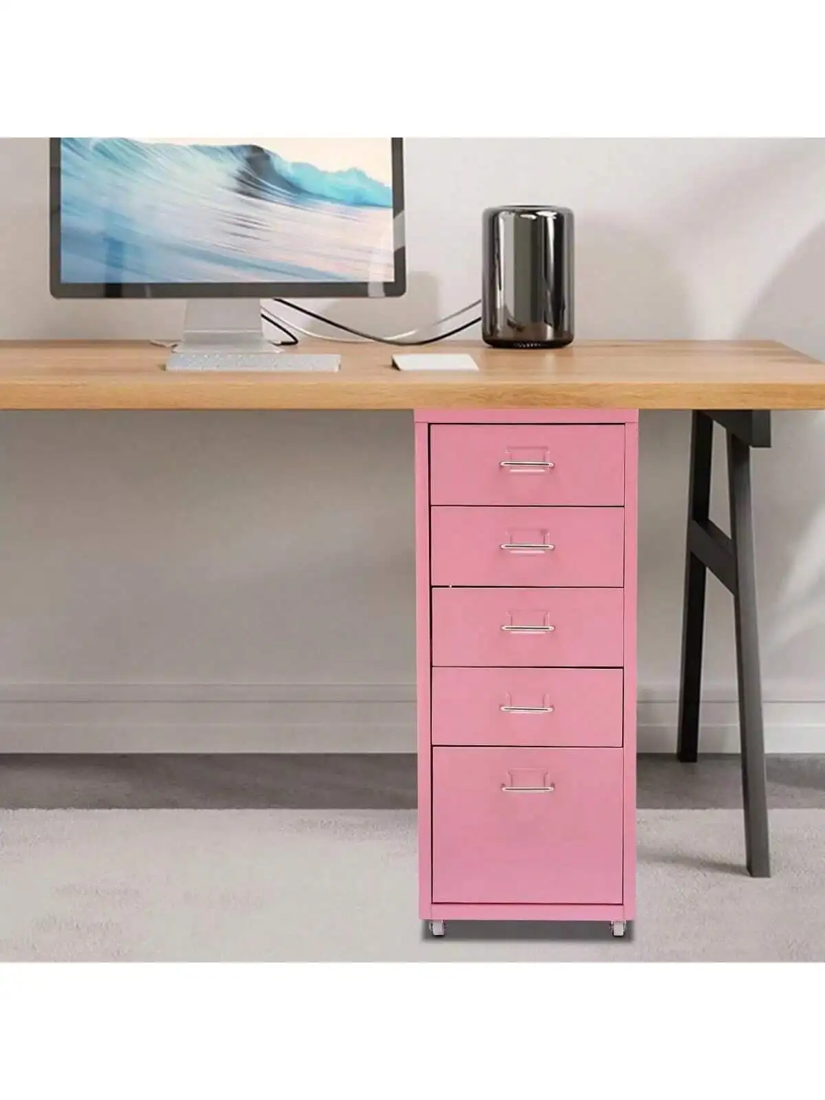 Metal File Storage Cabinet, Durable, Free Standing 5-Drawer Under Desk Organizer with Wheels for Bedroom Office