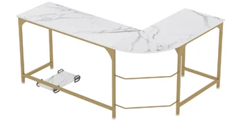 Reversible L Shaped Desk White – 66.1″ Corner Gaming Computer Desk, Office Workstation Modern Home Study Writing Table, Marble G